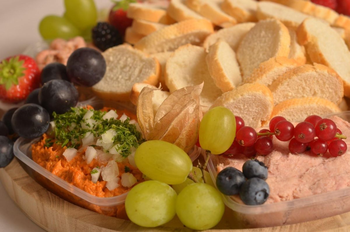 Apero Home made salad bar klein € 45 Gevuld met huisgemaakte salades: garnaal, préparé, vleessalade,rillette, tartaar van rivierkreeft, fantasie van gerooktezalm en krab, 2 stokbroden in schijfjes, rijkelijk versierd metfruit, ... Bierplank Vorige Home made salad bar groot Volgende